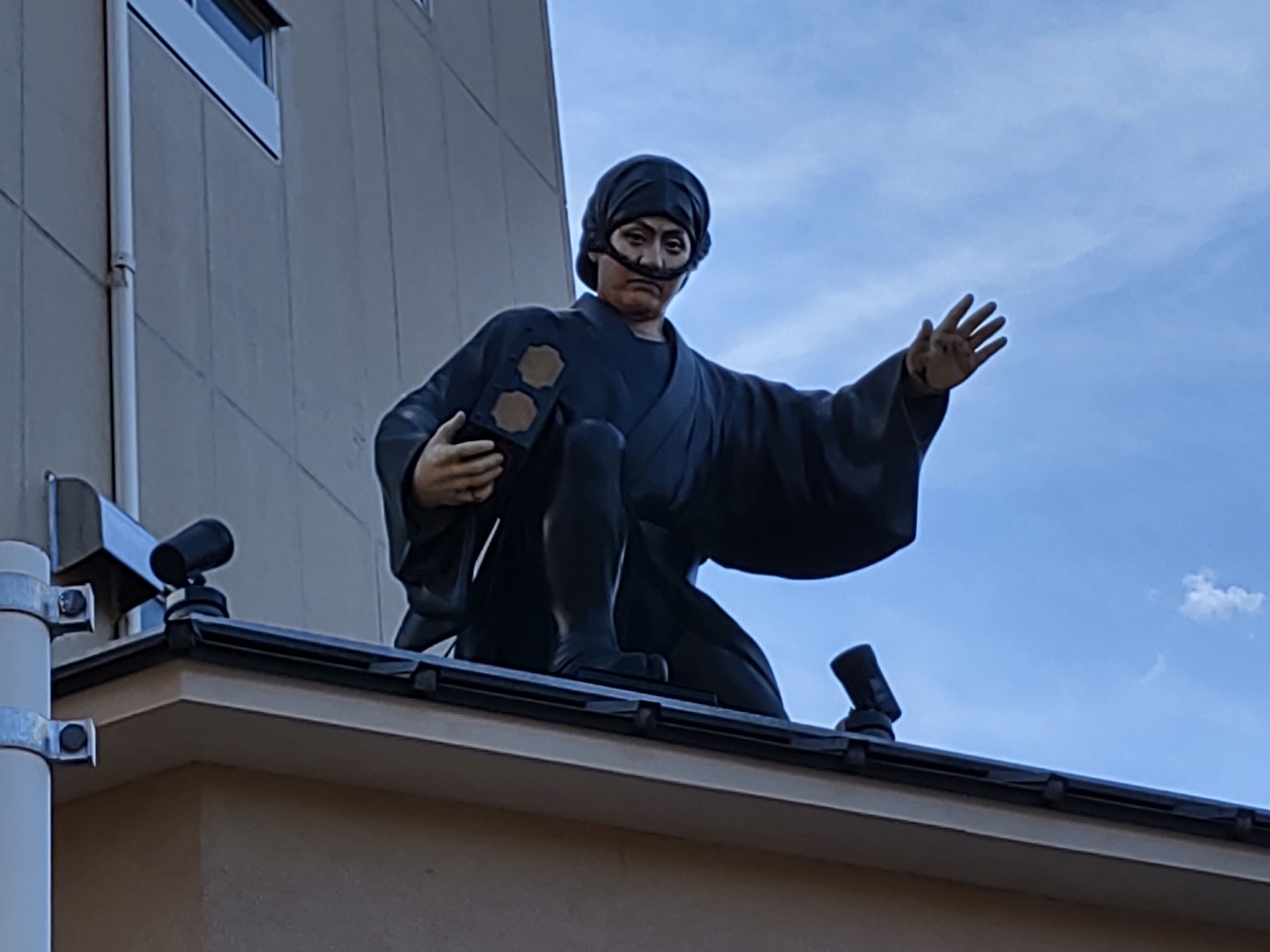 The other extraordinary thief is Jirokichi sitting on the roof of a clothing store. He’s known as Nezumi Kozo which is translated into a rat boy, because he was quick and smart like a rat. It is said that he was always alone and sneaked only in the samurai residences in Edo, currently Tokyo.