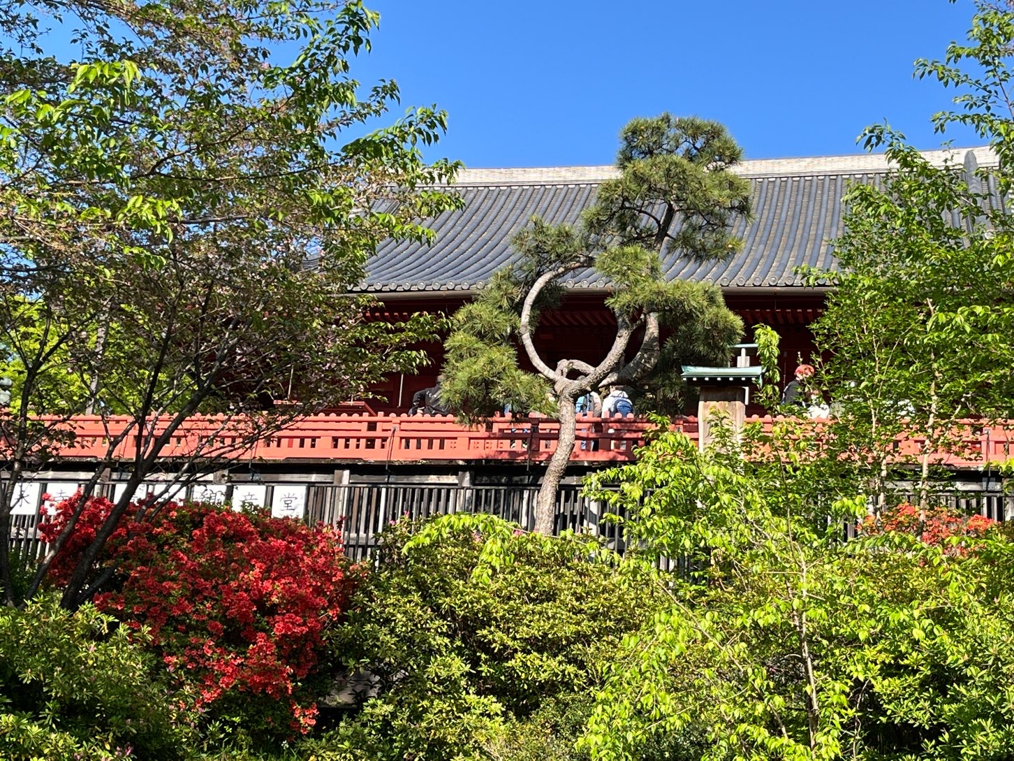 Until the end of March, Ueno-Park was a popular place for cherry blossom viewing. Now, the season proceeded to the next stage; with various colors, fresh green trees dotted with late-blooming cherry blossoms and other flowers like Azalea and Peony. This was also so charming.