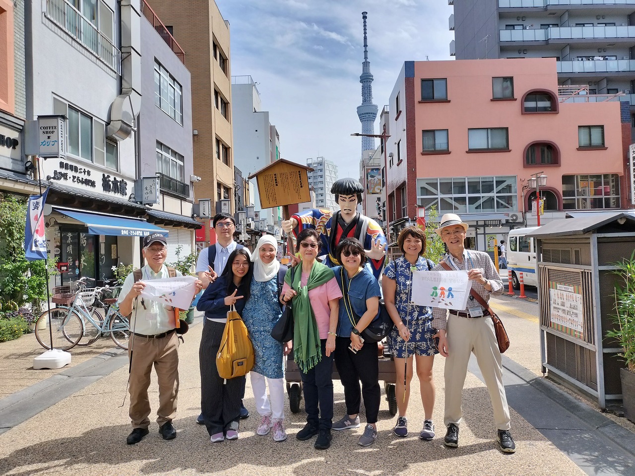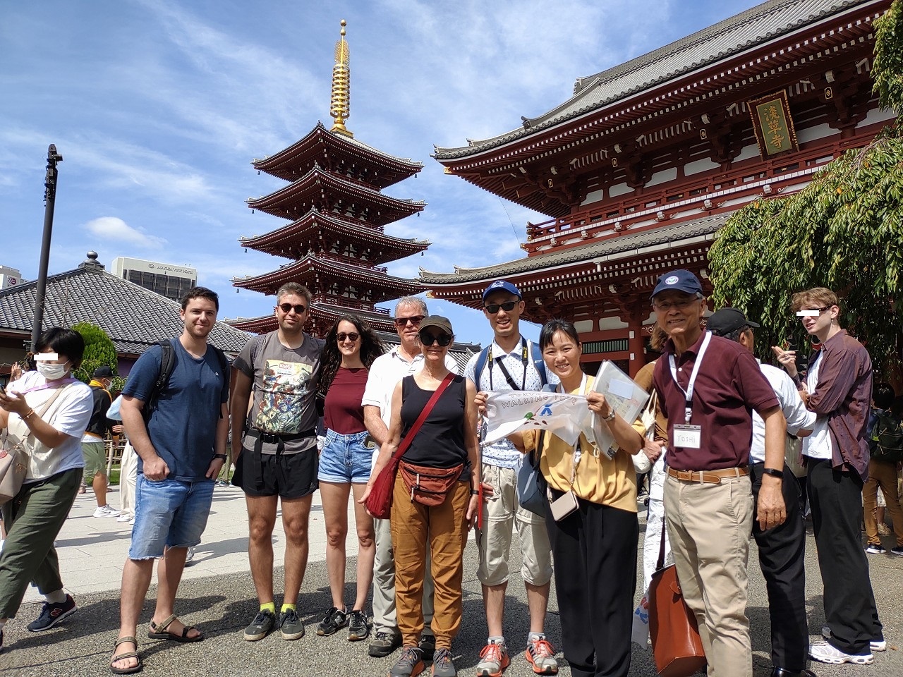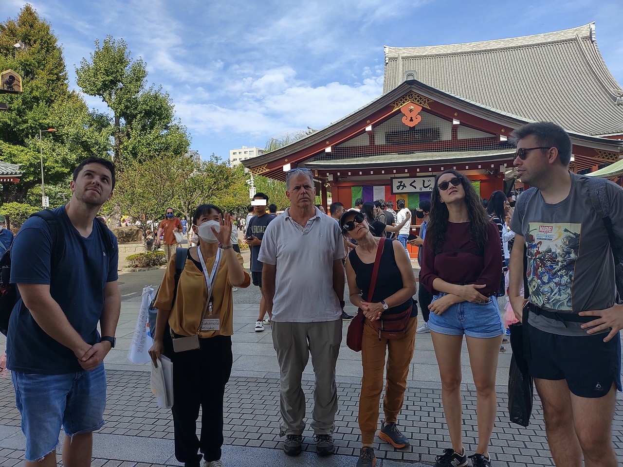 We appreciate your participation in our tours in Asakusa and Ueno Park on September 24. 27 guests kindly joined our tours from Australia, Singapore, Vietnam, Israel, UK, Germany, Spain, Italy, Egypt and Canada. Also, we are grateful that some of the guests participated in two tours in a row. It was nice weather and comfortable as if autumn has finally come. Nakamise Street was packed with people as usual and there was a local lively event in Ueno Park. The evening twilight tour showed you an illuminated townscape of Asakusa. As promised the group and snap photos are posted.