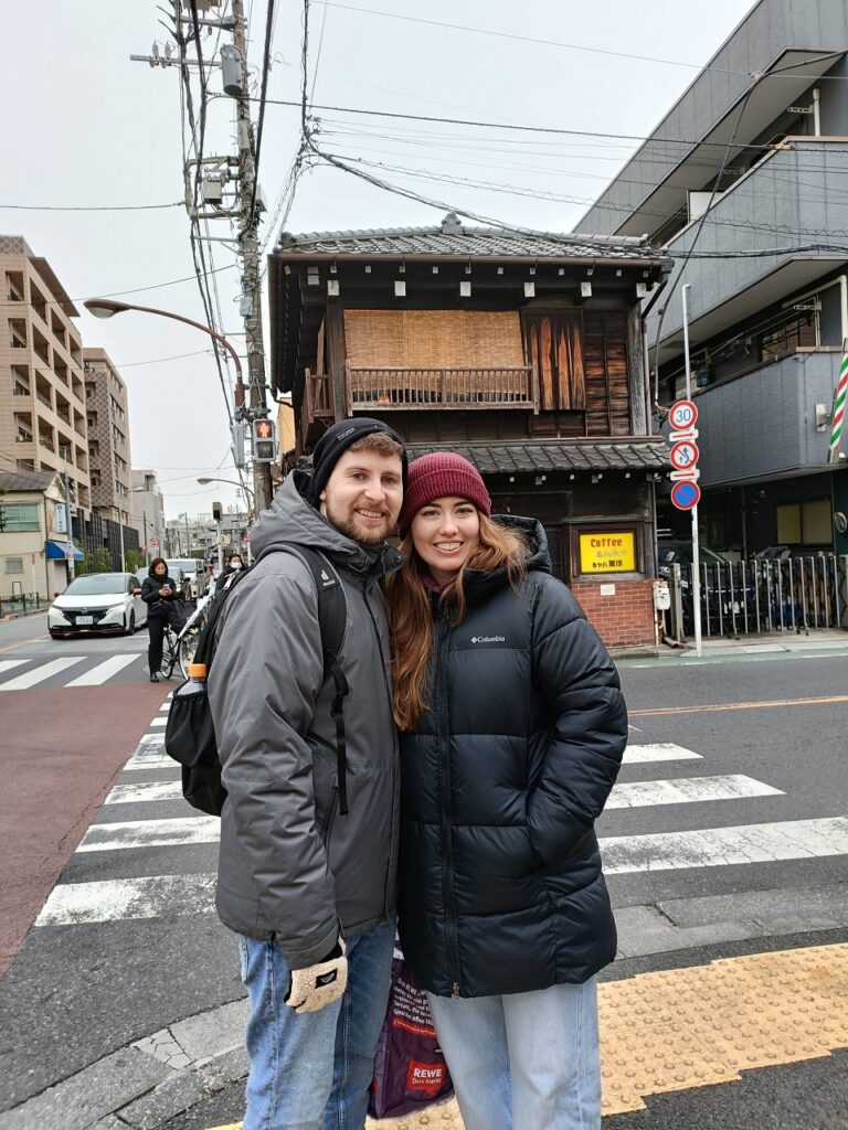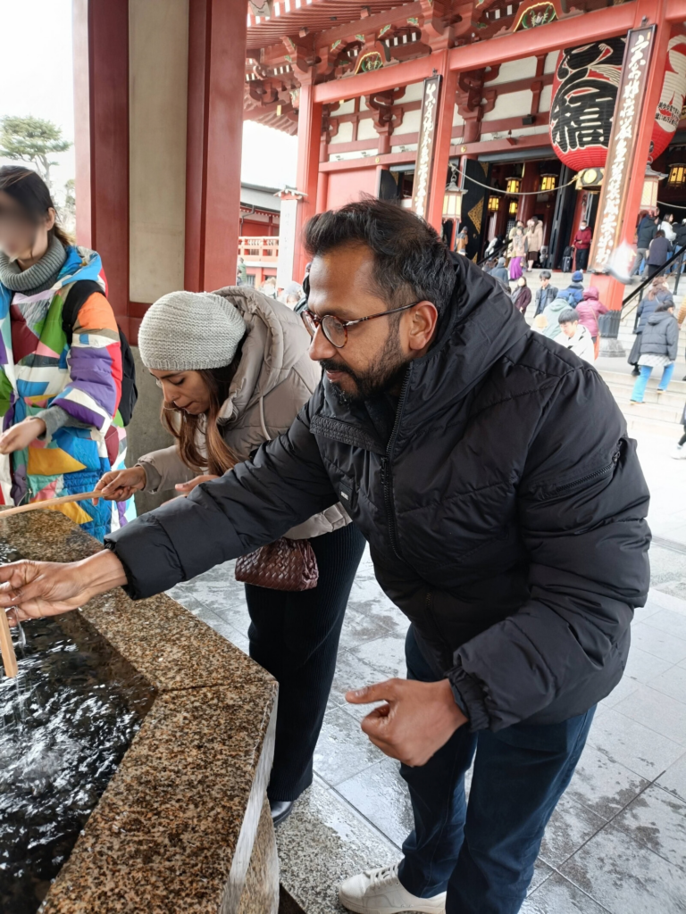Although the cold was sharp, it brought some unexpected good moments. One of them was visiting Kameju, a very popular Japanese sweets shop in Asakusa that usually has a long line. Thanks to the snowy weather, I was able to enter more easily and buy some souvenirs.