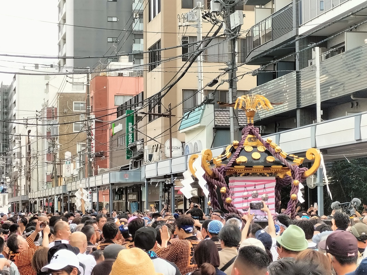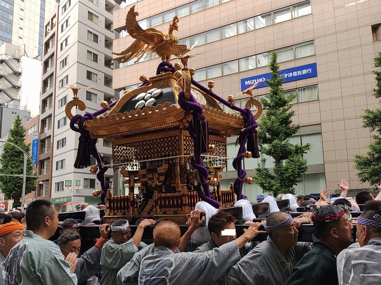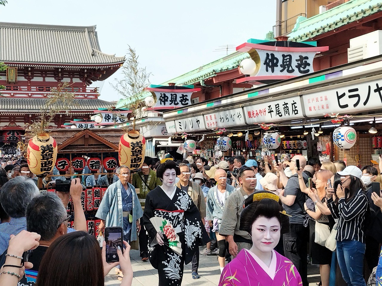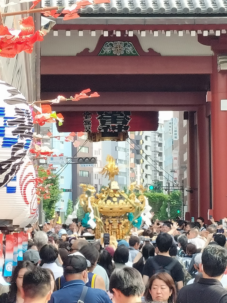 Last week, Asakusa was in the heat of the Sanja Matsuri Festival. It is the festival of Asakusa Shrine and is held once a year for three days around the third Saturday in May. About 100 Mikoshi (portable shrines) in the town and 3 Mikoshi from Asakusa Shrine were carried around by the people of the town. The enthusiasm and joy of the people carrying the Mikoshi was even moving.