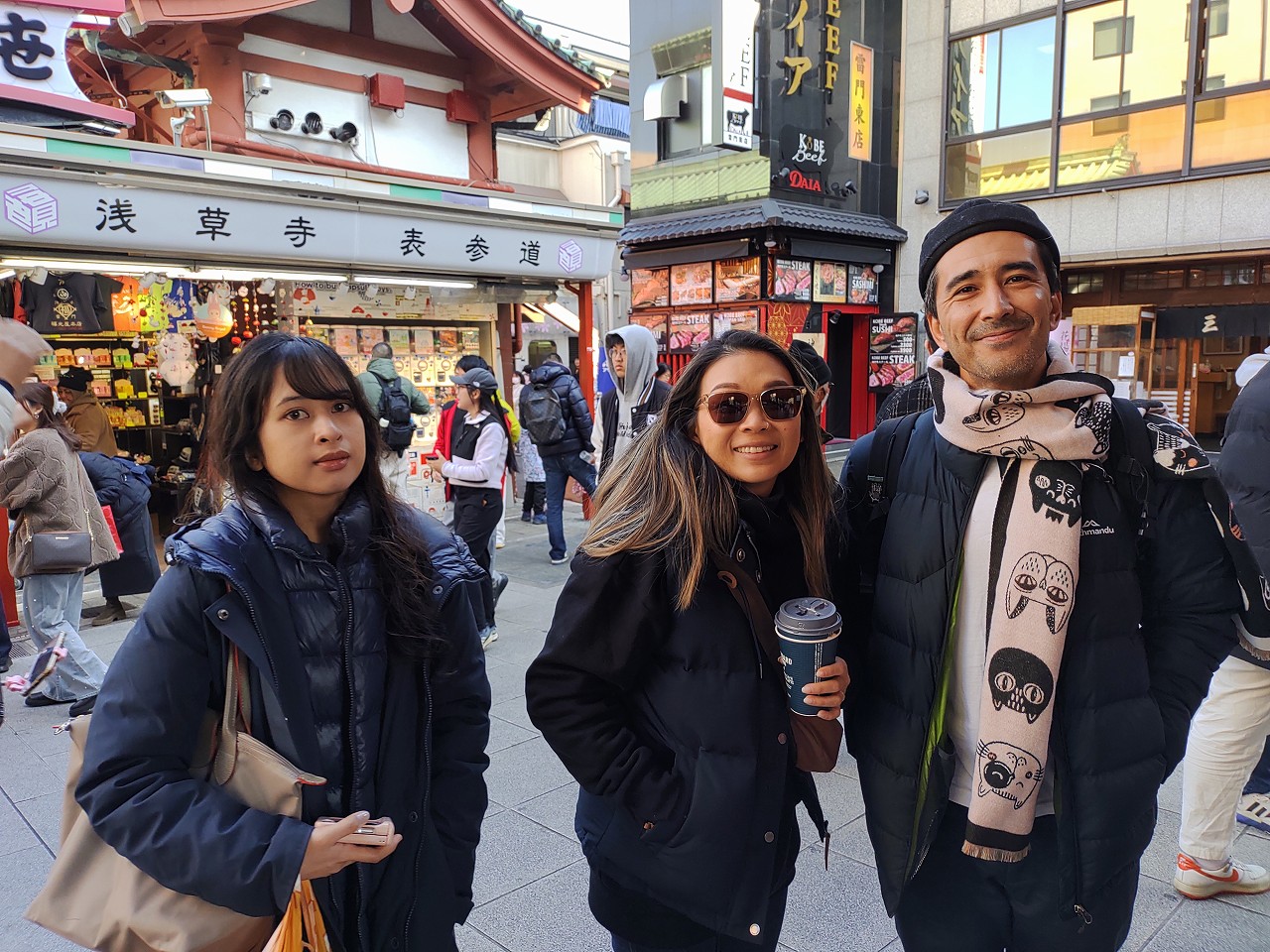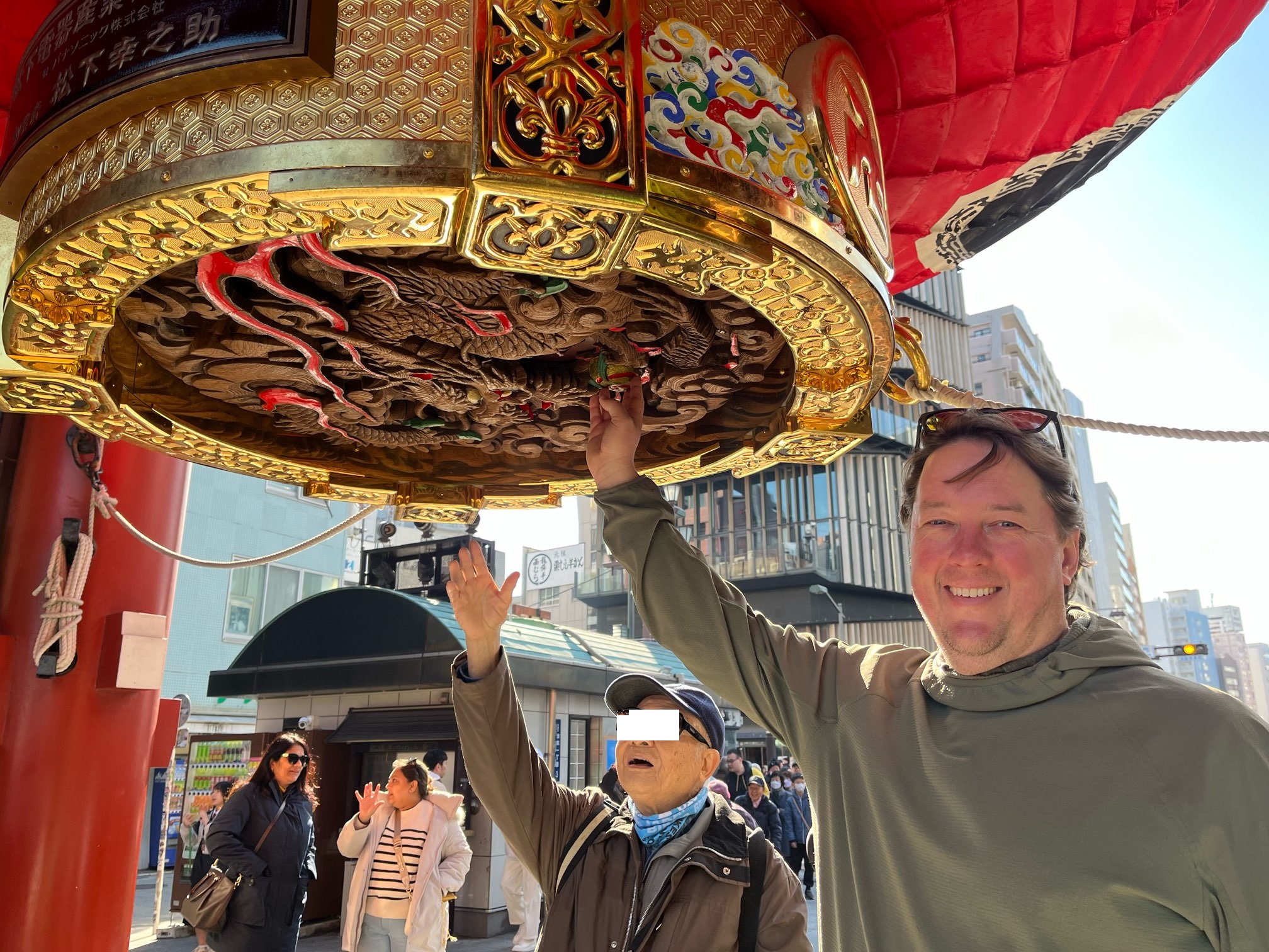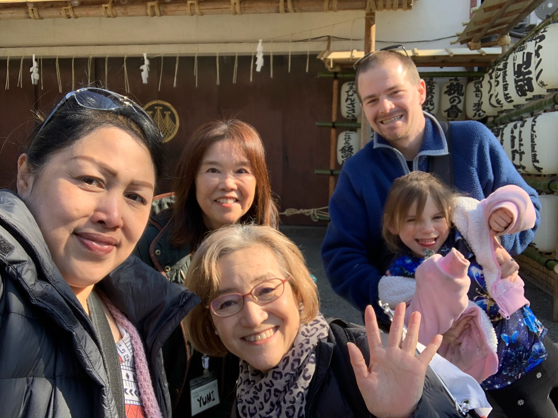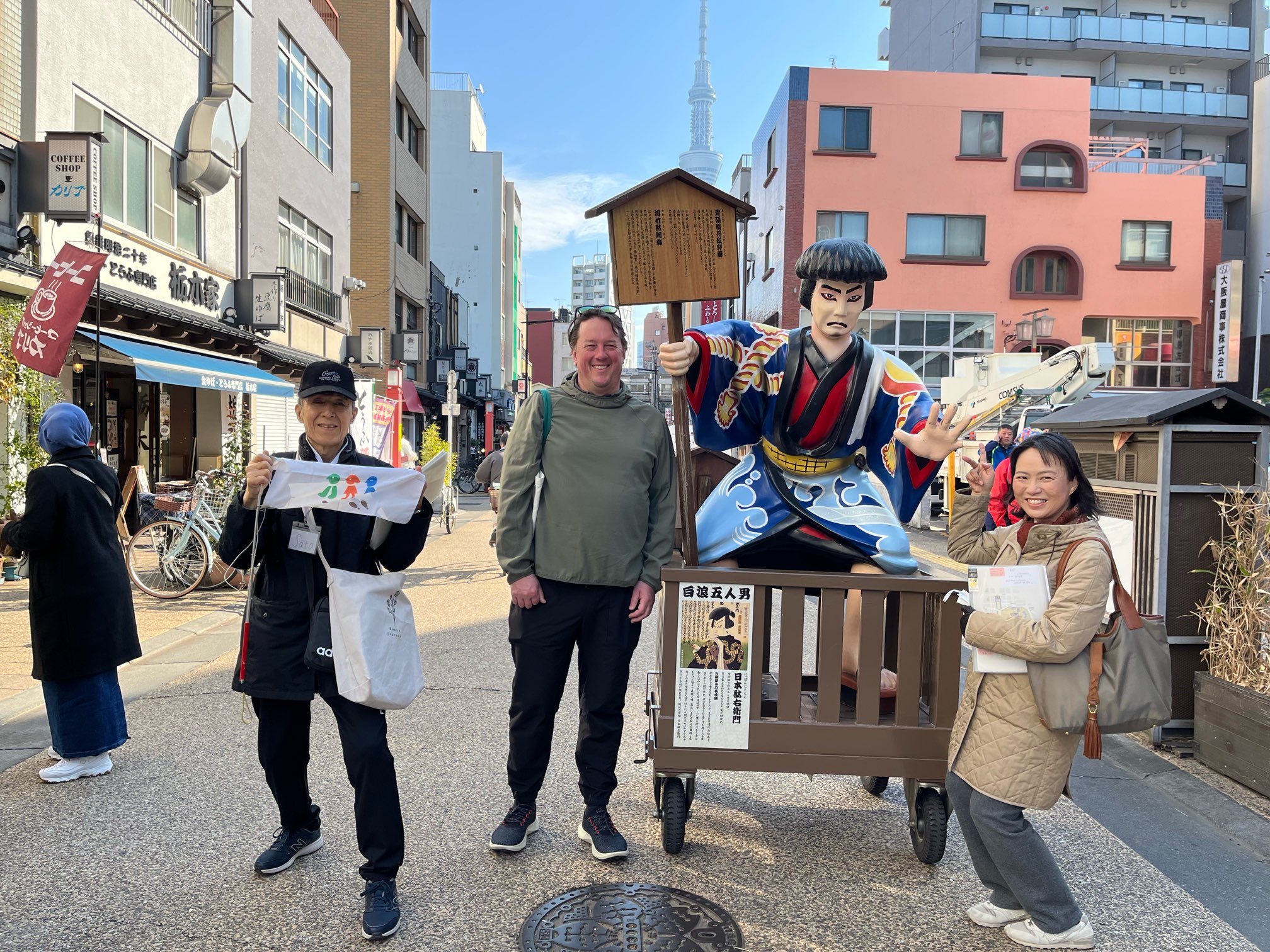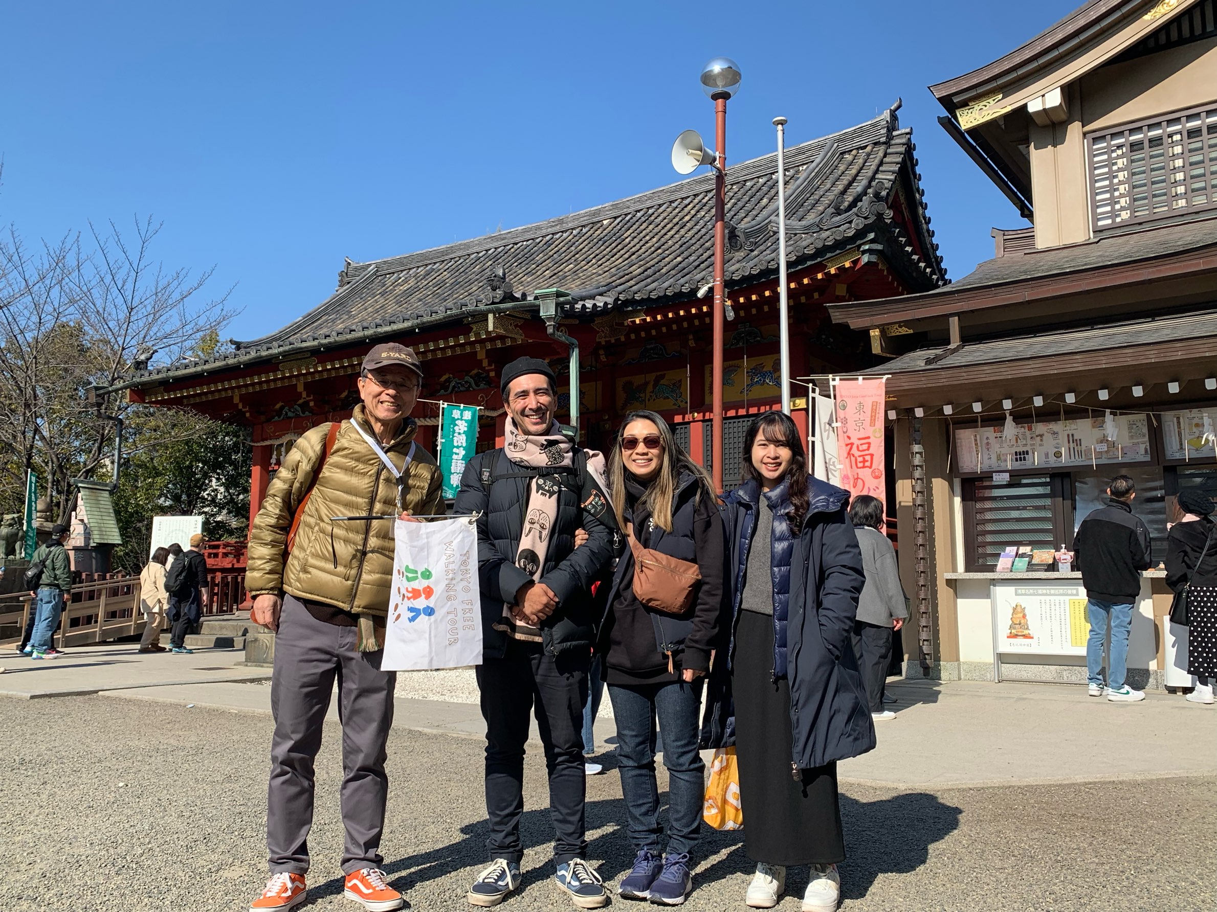 Thank you for joining our tour in Asakusa on January 31st. We welcomed 7 people from America, Australia and Philippines. It was sunny and unusually warm as if it’s April. There was a plum tree blossoming beside Hozomon Gate which has the delicate flavor of the plum. Plum blossoms tell us the arrival of spring. Cold season will continue awhile but we feel that spring is just around the corner. As reported in our last blog, preparation to build a stage for bean throwing ritual in the Setsubun Festival on February 3rd is underway. Various photos are posted.