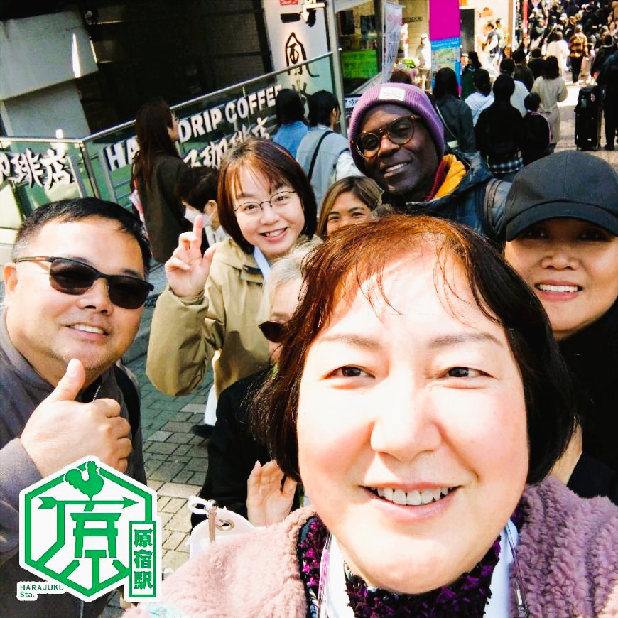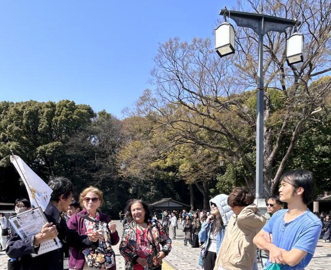 Tokyo Free Walking Tour enjoyed a slightly chilly spring morning at Meiji Shrine and Harajuku with 14 guests from the Philippines, the United Kingdom, and the United States.