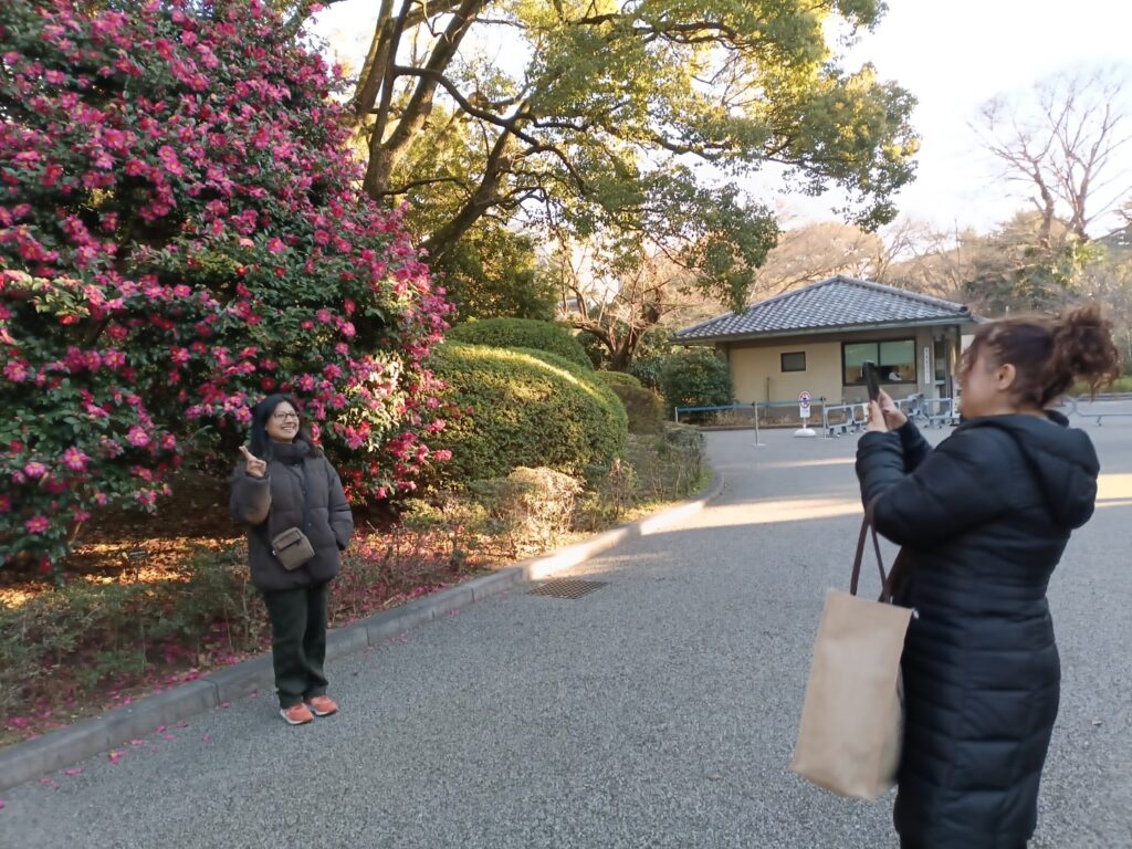 January 10th was an ideal day for a winter walking tour, with clear skies and crisp but not too cold air. And even though it is the middle of the winter, camellia and plum flowers were in bloom. It seems that throughout the year there are always some flowers in season to welcome the guests to the East Gardens, which is truly incredible.