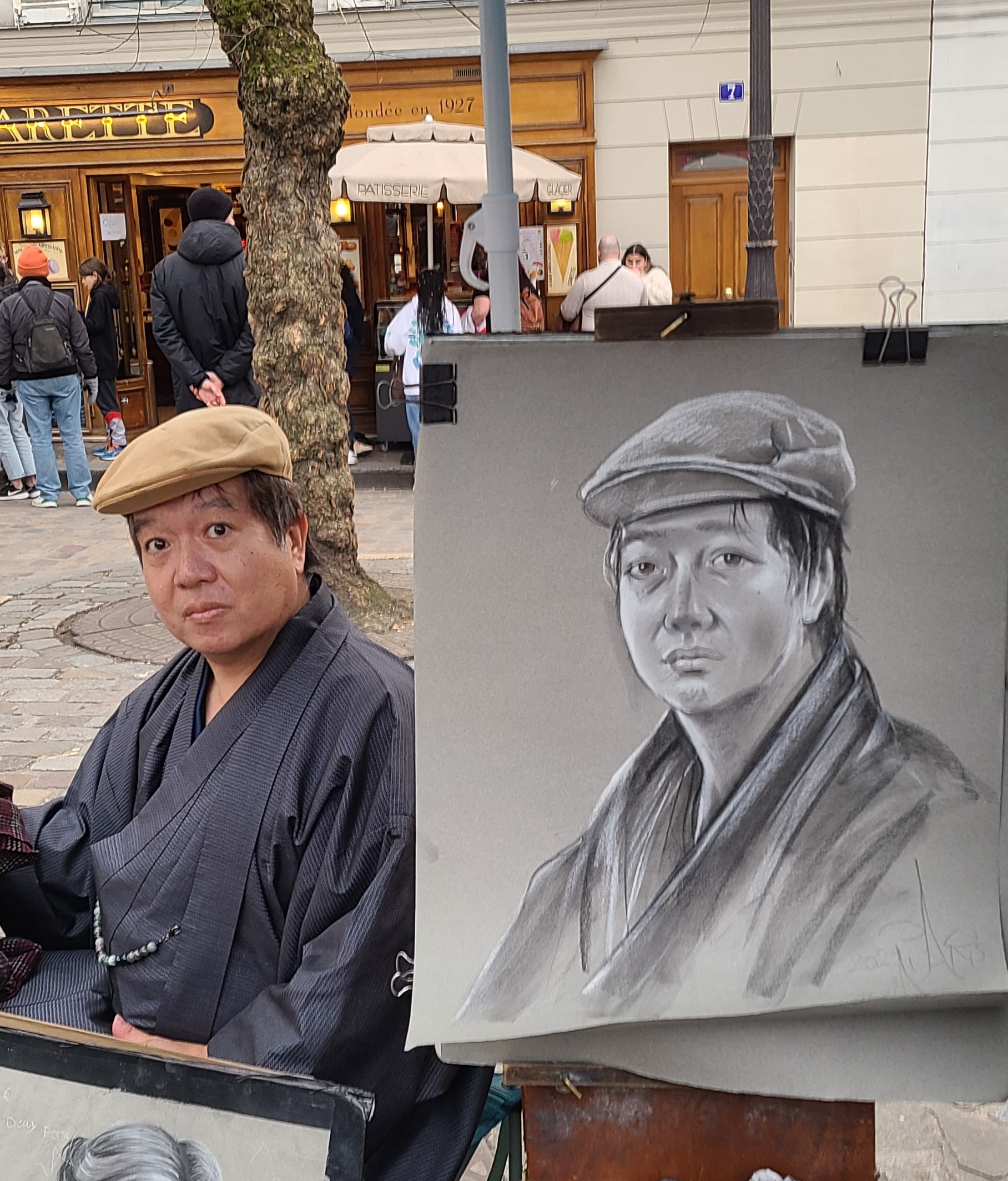 Near the Sacré-Cœur Temple, I could find a portrait drawing service by a local artist just as you can find in Asakusa.
