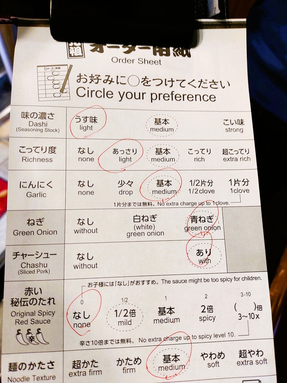 The good thing is that the taste can be adjustable. For example, if you prefer less spice, you can choose your taste in the order sheet. Each individual seat is secluded by a partition and the ramen is delivered through a slot from the kitchen.