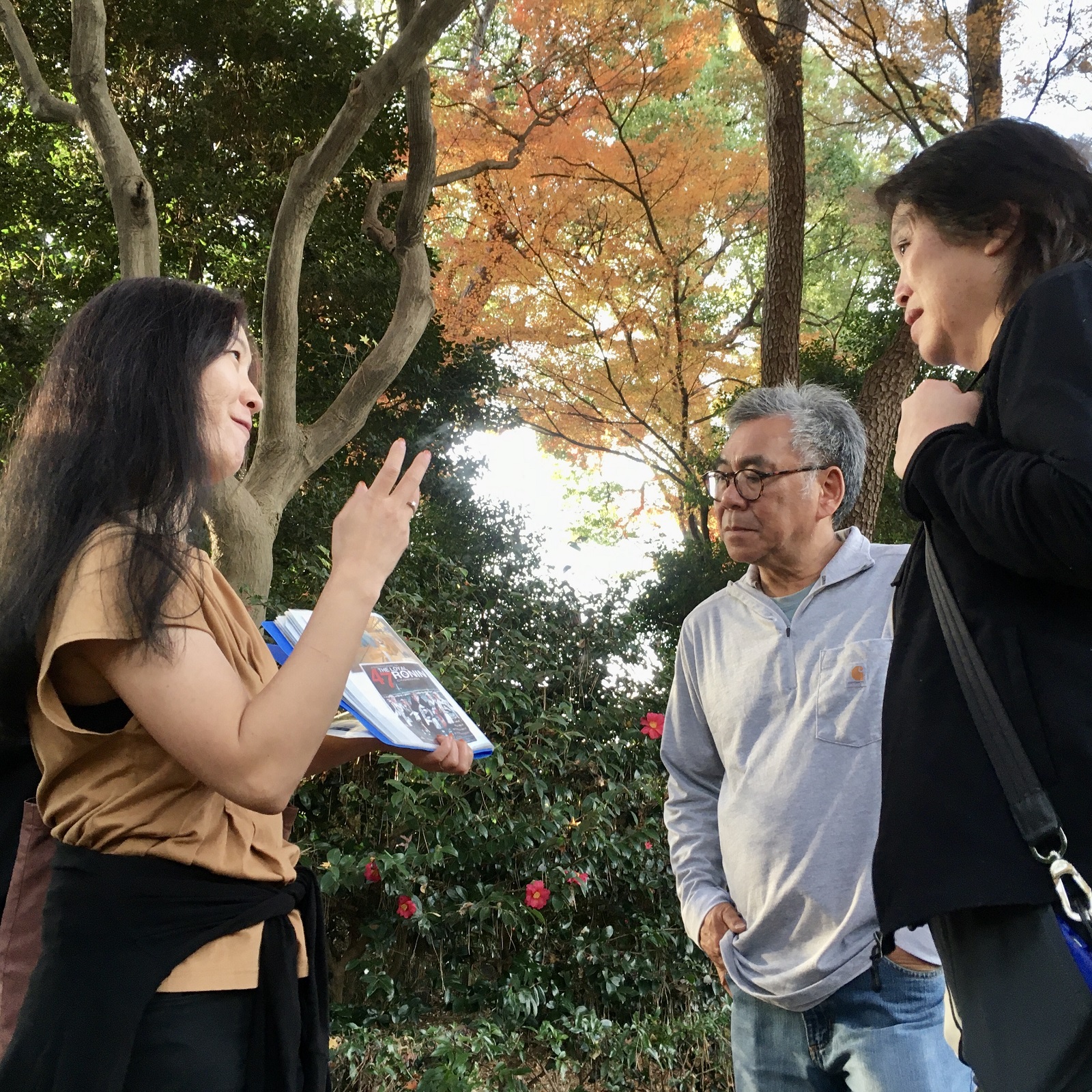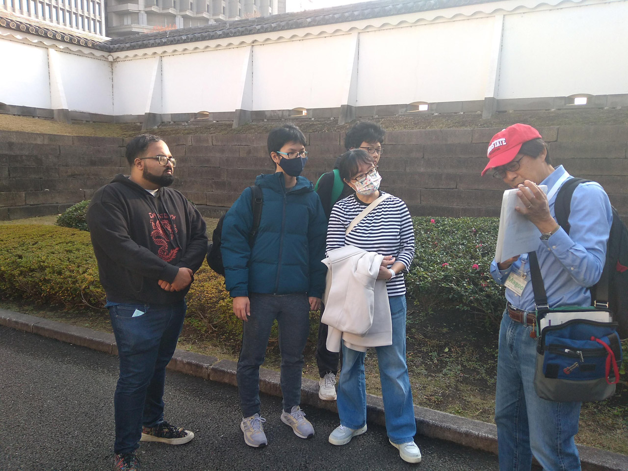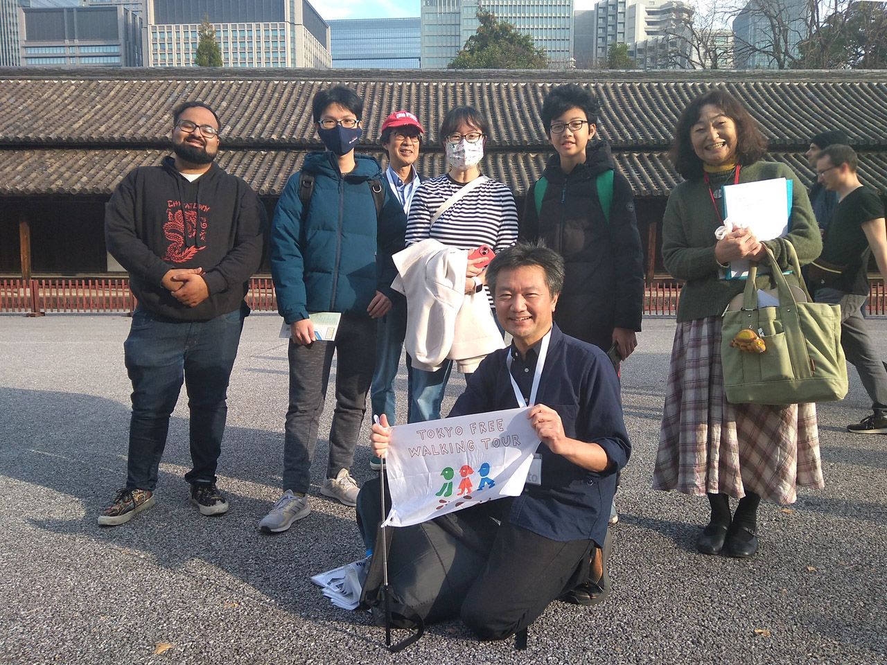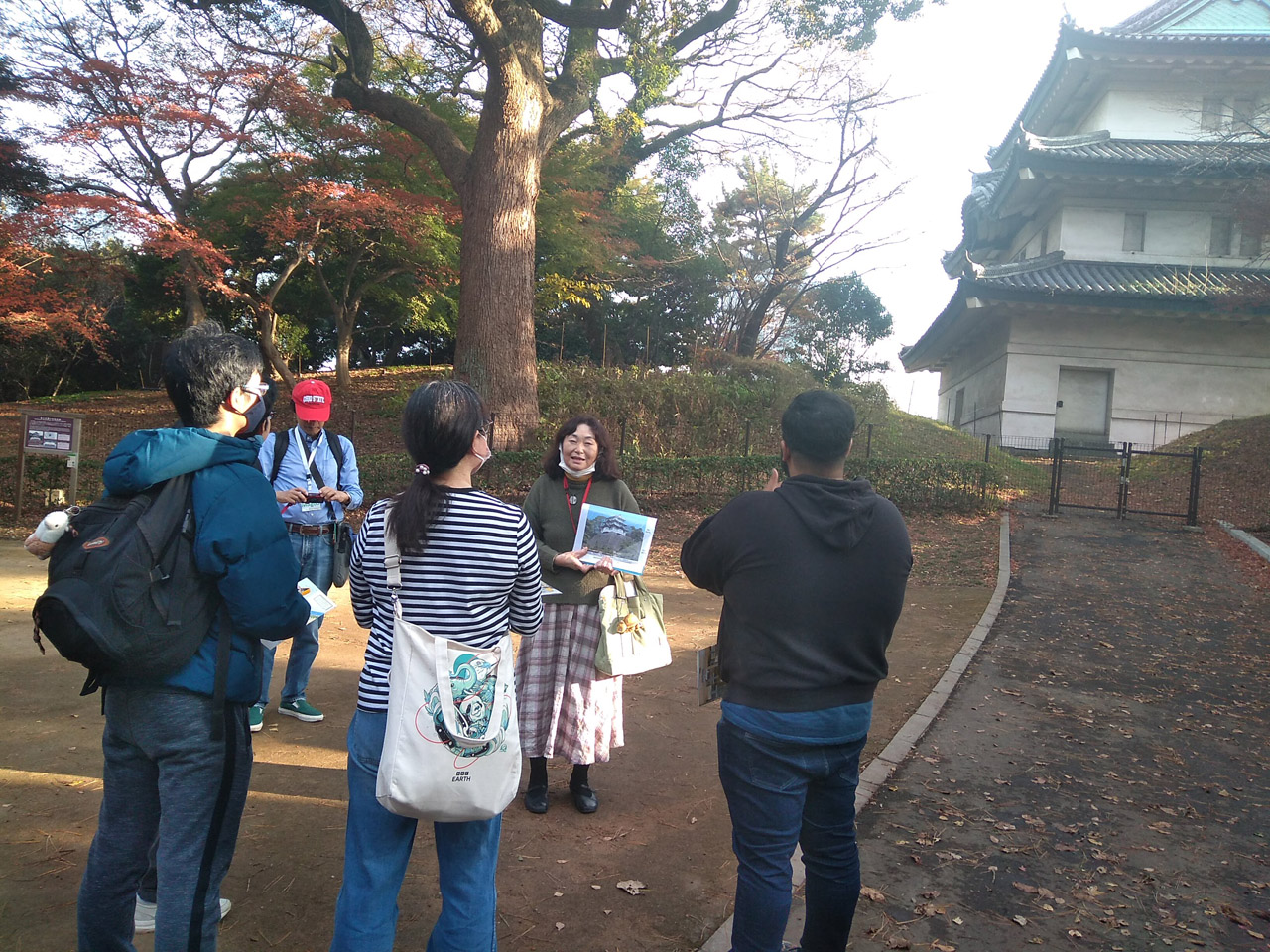 Thank you very much for participating in the tour of the East Garden of the Imperial Palace. On that day we hosted 6 people from USA and Singapore in an unusual warm weather for this time of the year. December is a winter month but the temperature rose to 20 degree centigrade in the afternoon. Although we could view autumn scenes in the East Garden, anyone could go through the garden without wearing a jacket. It was like October.