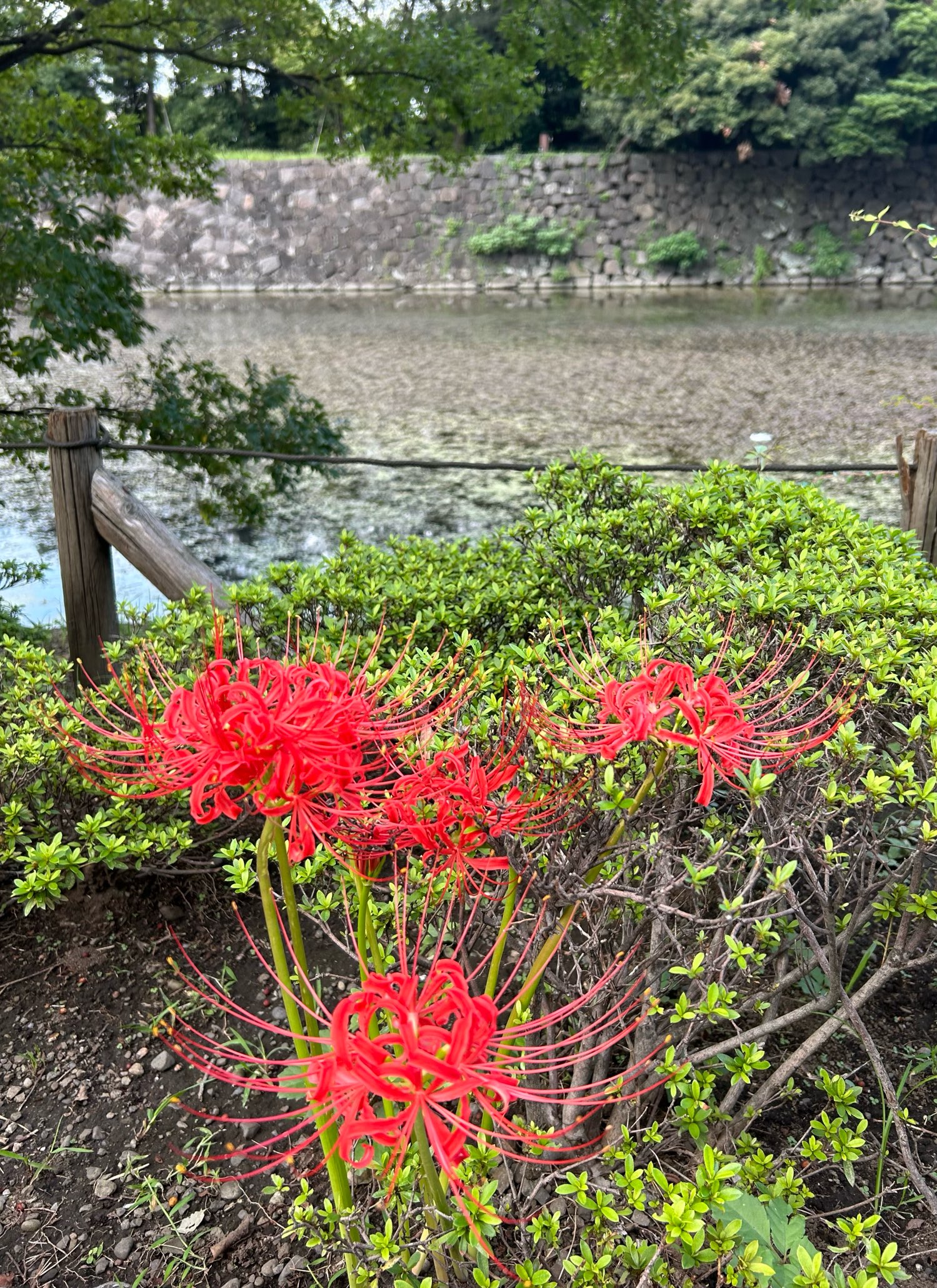 But we could see and hear an Autumn walking nearby. We could see Cluster amaryllis, or red spider lily and soon will see Osmanthus around the corner.