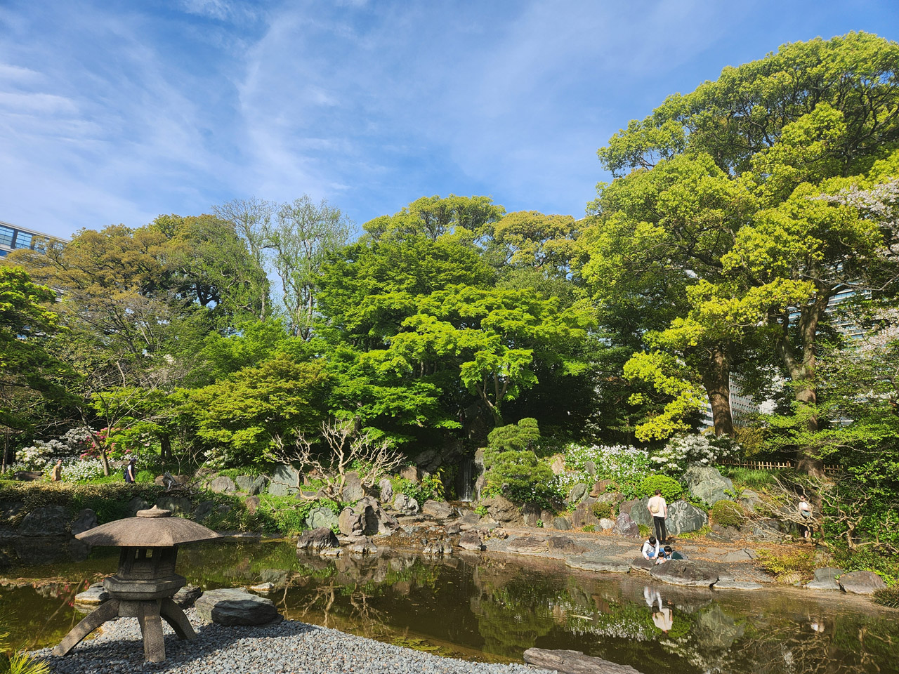 It was a lovely day to visit the exquisite garden and admire the flowers. The cherry blossoms (Sakura) at the East Garden were in full bloom, and vibrant flowers adorned the surroundings, welcoming guests who had come to Japan for their honeymoon. These flowers were likely to add to their celebration as well.