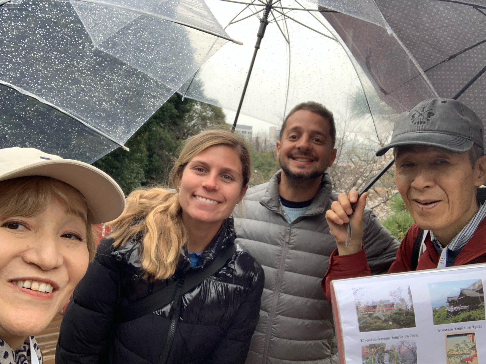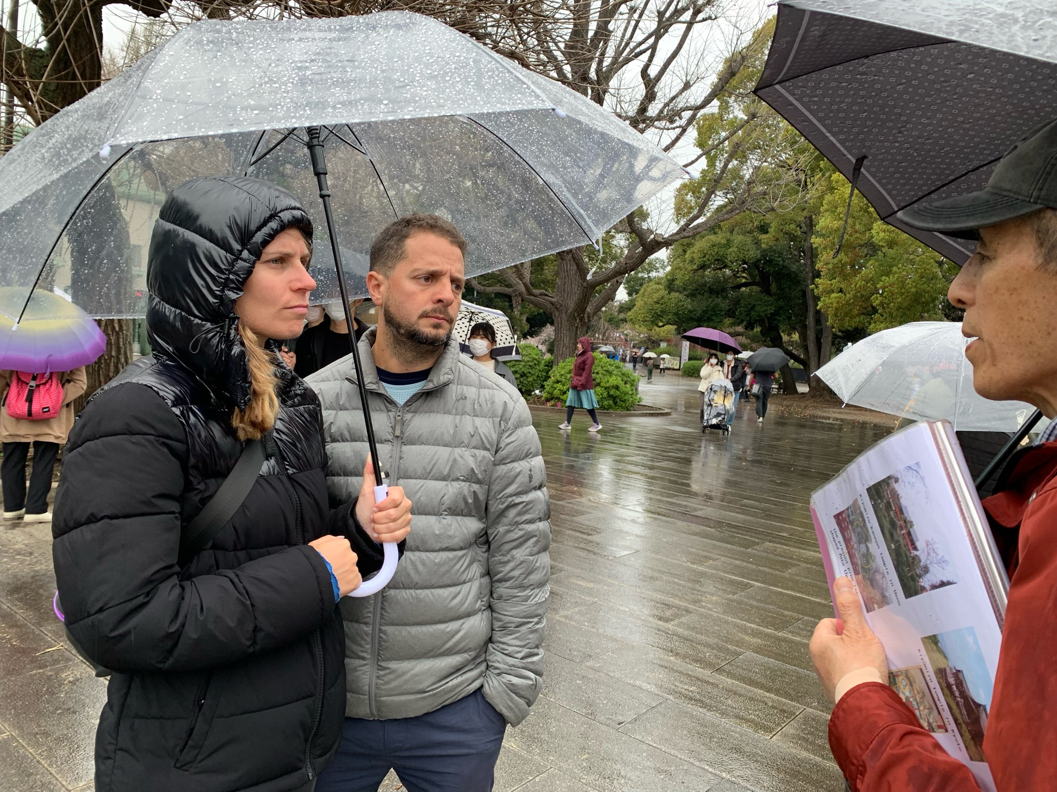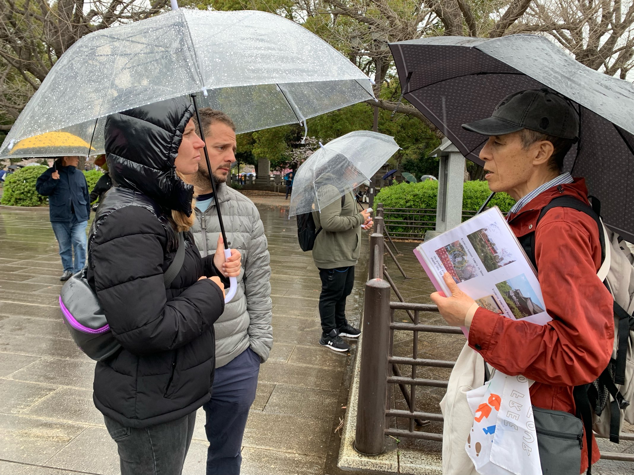 The weather was so called “Hana-gumori” or Cherry blossom cloudy at the beginning of the tour, but started to rain toward the end of tour despite our wish. The rain brought us a little inconvenience, but we really hope all of you had enjoyed the tour with us on the day.